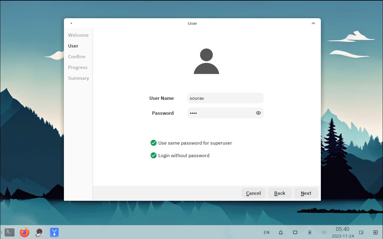 在重启后,快速设置向导开始运行,我输入了用户信息和密码,然后再次重启。
