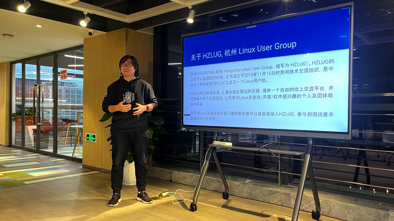 杭州 LUG 活动组织者 strrl 也来到现场,为现场参会者介绍了 hzlug 的历史和现状,并邀请大家参与到 hzlug 的活动组织中,与更多的小伙伴共同交流技术。