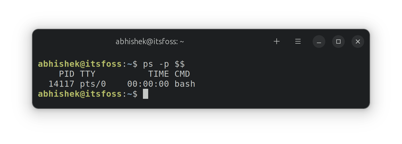 其中,$ 代表的是当前进程 / Shell 的进程 ID。