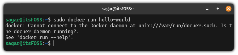 如果你尝试在不使用 sudo 的情况下使用 Docker,则会出现错误: