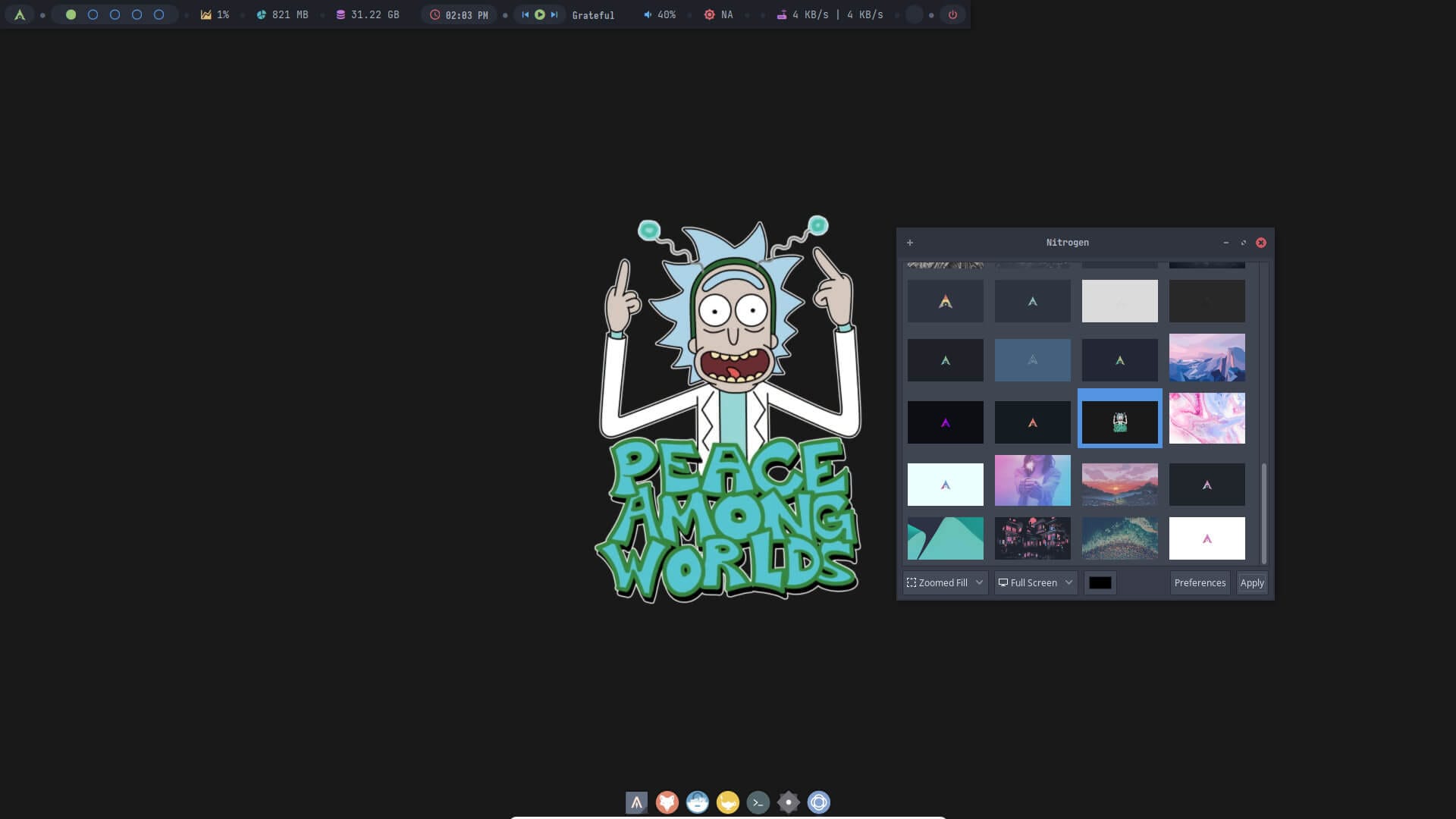 然后我查看了 Archcraft 上的预装壁纸,令我惊讶的是,Rick 向我竖起了中指。